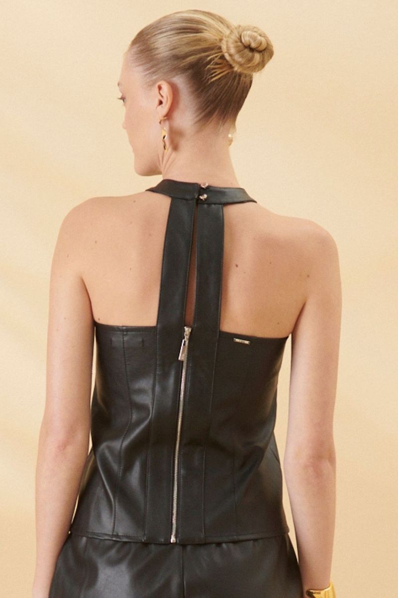 Blusa de Couro Detalhes Nadador Couro Collection Malu SMK
