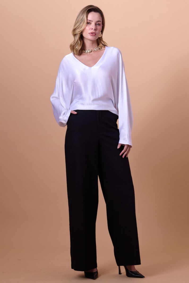 Blusa Feminina em Crepe Manga Longa Marie Smk Branco