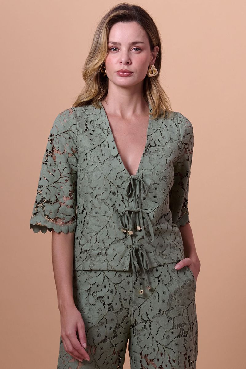 A Blusa Feminina Rendada Manga 3/4 SMK é a peça perfeita para quem busca um visual delicado, moderno e cheio de estilo. Confeccionada em tecido rendado leve e sofisticado, traz charme e elegância em cada detalhe. Seu decote V valoriza o colo, enquanto o cordão de amarração frontal permite ajuste personalizado, garantindo conforto e caimento impecável.