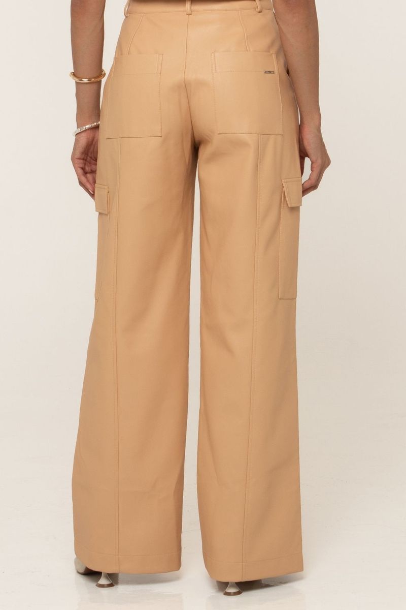 Calça de Couro PU Smk Com design moderno, a Calça Cargo em couro sintético traz personalidade ao visual. Caimento estruturado, bolsos faca e bolsos cargo funcionais Combinações estilosas do dia a dia à noite, body justo + salto fino.