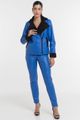 Calça Feminina Reta Couro Pu Bicolor Smk Azul Médio