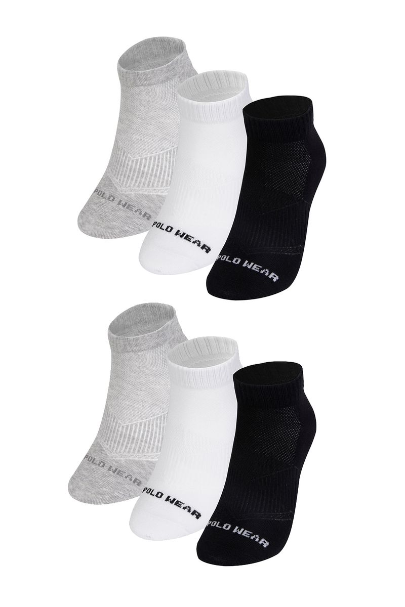Kit 6 Meias Masculinas Cano Curto Atoalhadas Polo Wear Sortido