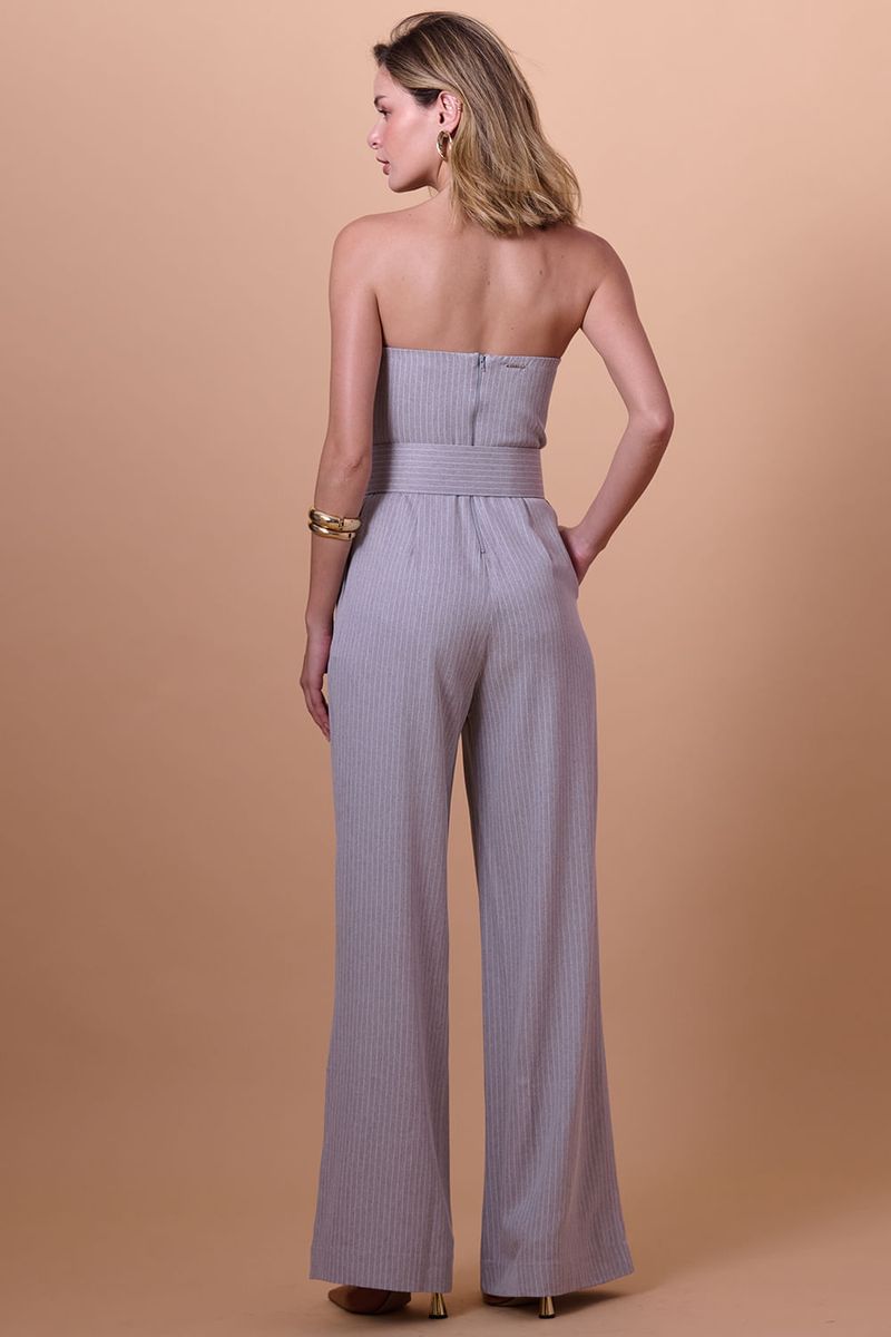 O Macacão Longo Feminino Risca de Giz SMK é a escolha perfeita para quem busca um visual sofisticado e moderno. Com decote tomara que caia, a peça valoriza a região dos ombros e colo, trazendo sensualidade na medida certa. O fechamento com zíper nas costas garante praticidade e caimento impecável, enquanto o tecido risca de giz adiciona um toque clássico e elegante inspirado no alfaiataria.