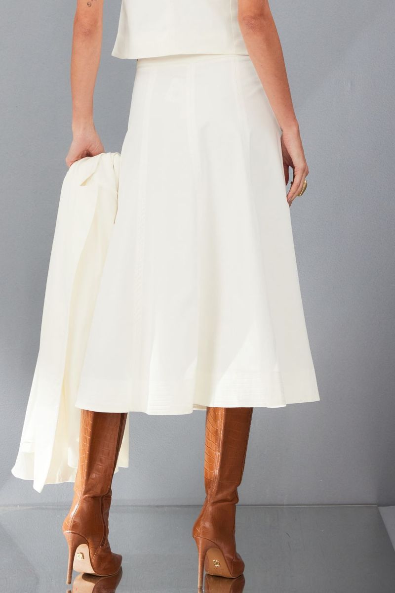 A Saia Midi Em Alfaiataria combina elegância, modernidade e versatilidade em uma única peça. Comprimento midi e corte estruturado, ela garante um caimento impecável Combine com camisas e blazers para um look elegante e profissional.