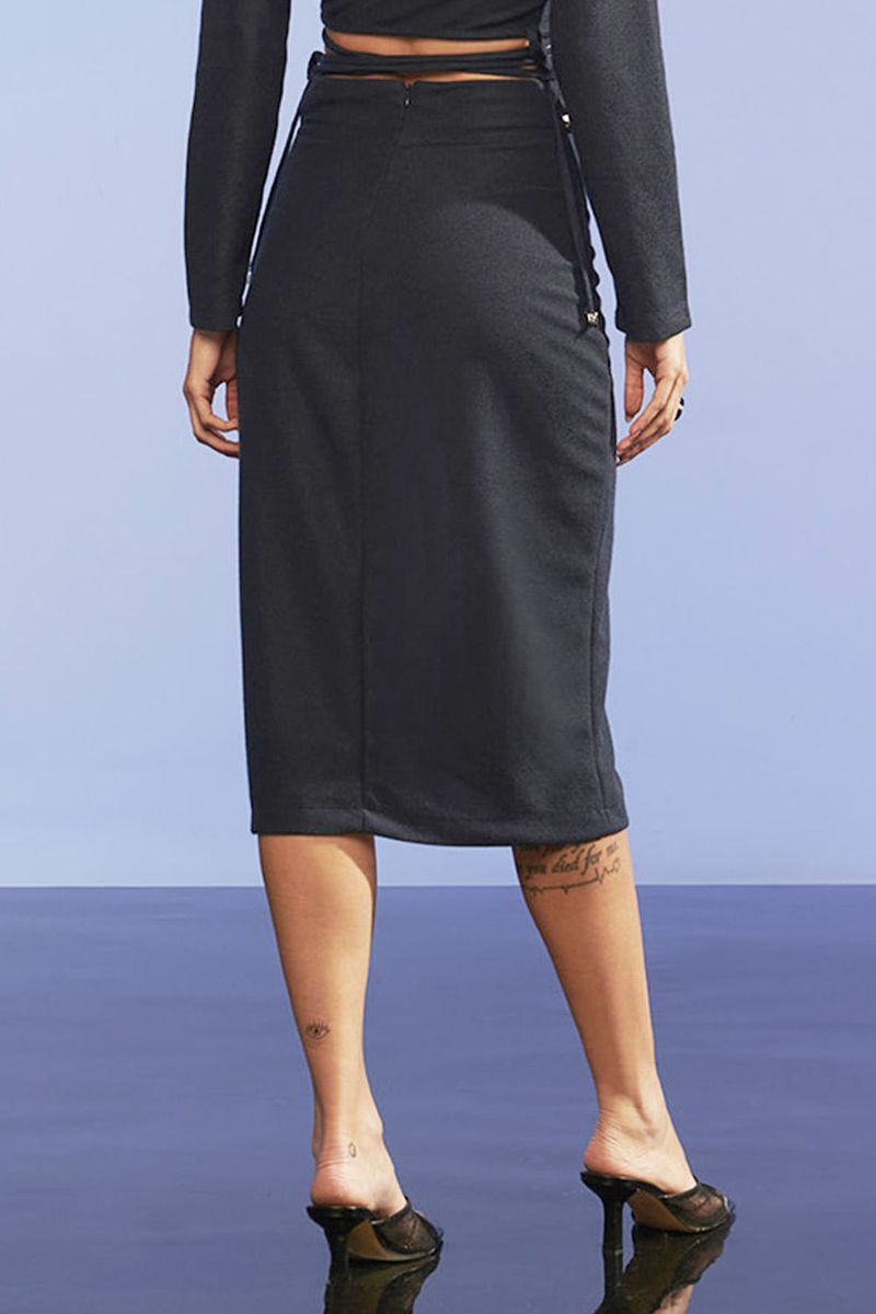 Saia Midi Twiggy Cós Amarração Smk Azul Escuro